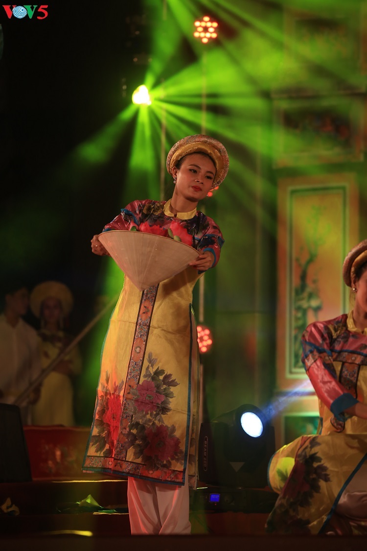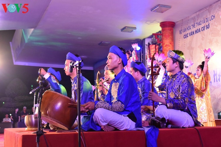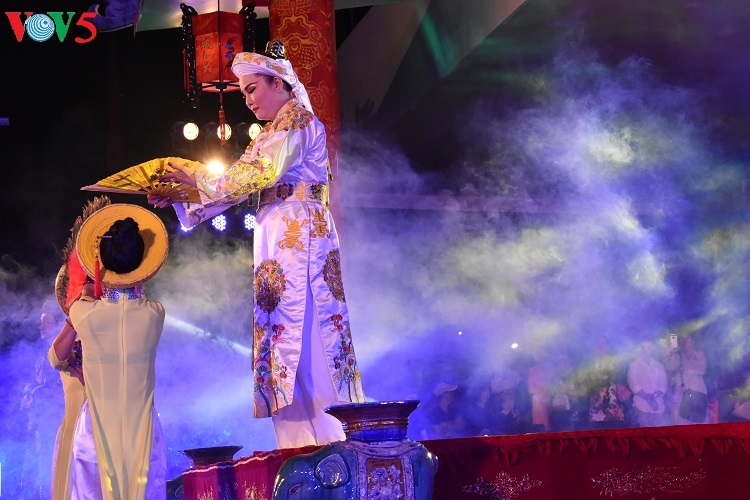 Más de 450 artistas y actores de diferentes localidades representaron en la ocasión obras en elogio al país y al pueblo de Vietnam. Las letras rebuscadas de las canciones Chau Van se enfocan en alabar los méritos de las deidades benéficas o héroes nacionales. Mientras, las melodías son suaves y a la vez dinámicas y alegres. Llevaron al escenario las 36 sesiones de mediumnidad como lo hacen en templos y santuarios en homenaje a la Diosa Madre y el Santo Tran (Tran Hung Dao). Durante los cuatro días del festival, del 26 al 29 de abril, imperaban en la provincia anfitriona los sonidos animados de la pandereta, las castañuelas y los platillos, instrumentos que completan por excelencia el rito de entrar en trance.