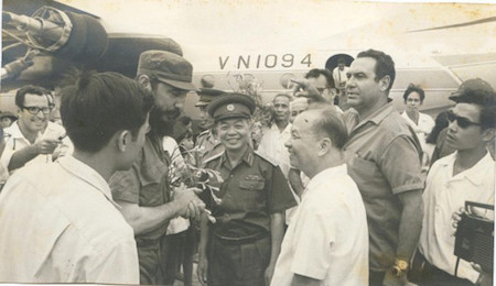![]() El primer ministro de Vietnam, Pham Van Dong, recibió a su homólogo cubano, Fidel Castro, en Quang Tri en septiembre de 1973, en occasión de la primera visita del líder revolucionario de Cuba al país indochino. |