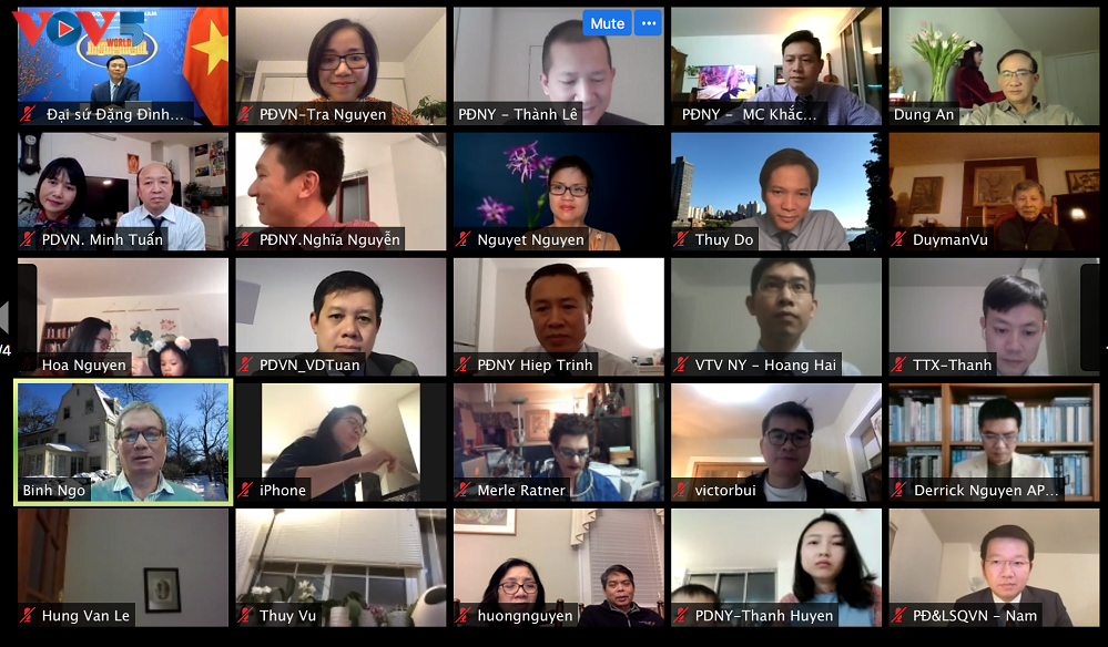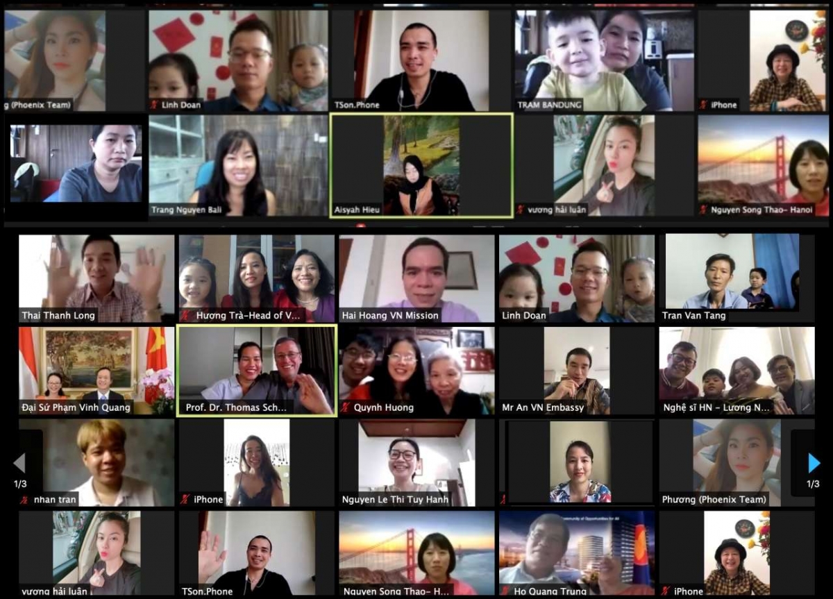 Unos 120 vietnamitas en Indonesia y Timor Leste participan en el encuentro virtual en ocasión del Tet del Búfalo. (Foto: VOV) |