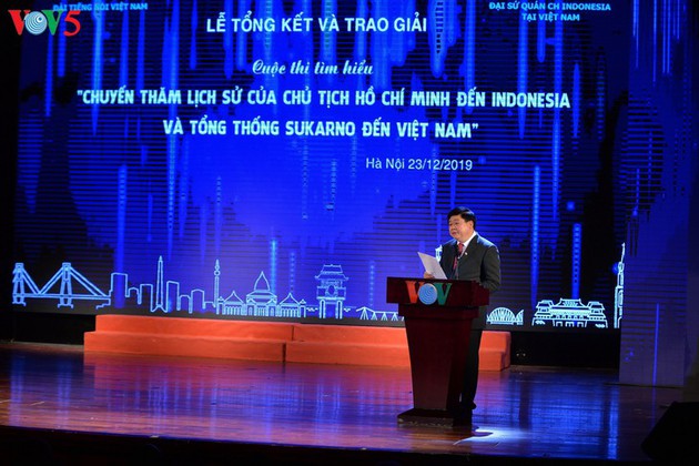 El director general de la VOV, Nguyen The Ky, informa que periodistas de la emisora viajaron a Indonesia para reportar sobre las actividades conmemorativas de esas visitas históricas. |