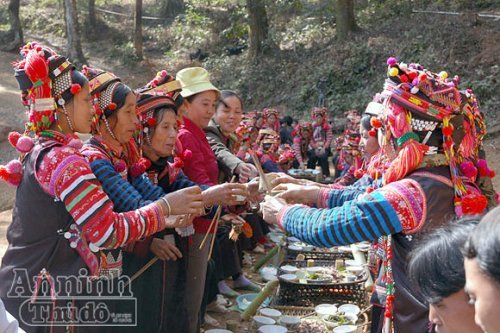 En este acto, los Ha Nhi se regalan huevos teñidos colocados con discreción en el plato de arroz glutinoso, con el deseo de un año venturoso. Los visitantes a quienes les invitan a comer estos huevos especiales tendrán mucha suerte durante el año, según la creencia ancestral de este grupo étnico minoritario.