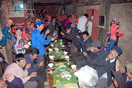 ![]() Después del ritual, los pobladores Ha Nhi se sientan juntos para disfrutar de las comidas en un ambiente de alegría y sin preocupación