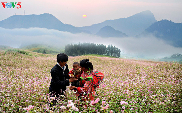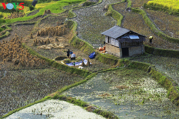 | Toda la familia en el campo (Nguyen Anh Tuan). Se trata de una imagen muy popular en las localidades altiplanas del noroeste de Vietnam, cuando los padres trabajan en el campo mientras sus hijos juegan a su lado. |