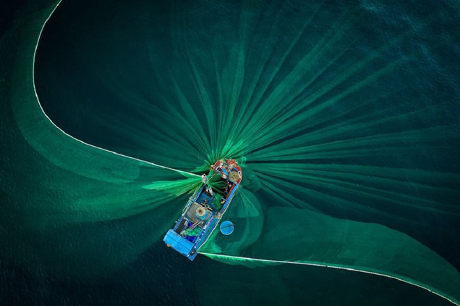 “Florece”, por Nguyen Ngoc Thien. En la instantánea aparece una red durante la temporada de pesca de anchoa en el área del mar de Hong Yen, provincia central de Phu Yen (Foto: Smithsonianmag) |