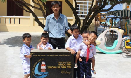 Además de Le Anh Duc, los niños también quieren mucho al profesor Nguyen Ngoc Ha, de 26 años de edad. Según cuenta, aunque vivan lejos de su tierra natal y tengan pocos amigos, los alumnos perseveran en el estudio y logran resultados académicos excelentes. Al cumplir los deberes estándares de enseñanza del Ministerio de Educación, ambos profesores realizan actividades extraescolares para ayudar a los estudiantes en su reincorporación social cuando regresen a la tierra firme del país. A dos años de estar en la escuela primaria Dao Sinh Ton, los dos maestros reconocen su suerte al poder trabajar en la tierra sagrada de la Patria. Nguyen Ngoc Ha dijo: “Este lugar es mi segundo hogar. Paso mi vida aquí con los alumnos y sus familiares, quienes me dan mucho cariño y atención. Con esa misma dedicación, cuidamos a los niños como si fueran nuestra familia, mientras que ellos nos consideran sus tíos o hermanos mayores. Nuestra vida aquí es muy apacible”.