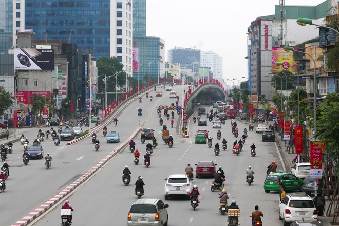 Portales de diseño en la avenida Thang Long, hacia el interior de la ciudad