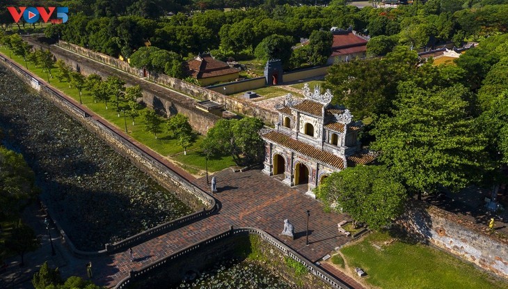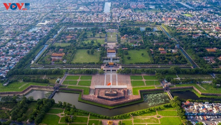 Se anima a los turistas a pasar por la Ciudad Imperial de Hue y explorar las tumbas de los reyes de la dinastía Nguyen y las imponentes y antiguas pagodas. (Una vista aérea de la ciudadela de Hue). |