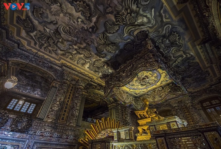 La Tumba de Khai Dinh es el epítome del uso de porcelana y cristalería en la decoración. Goza de altos valores artísticos y arquitectónicos. |
