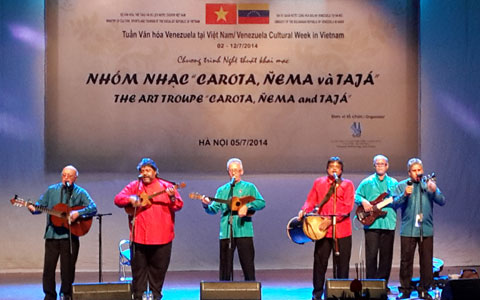(VOVworld) – El espectáculo artístico ofrecido la víspera al público de Hanoi por el grupo “Carota, Ñema y Tajá” dio inicio a la Semana de Cultura de Venezuela en Vietnam. El programa forma parte de una serie de actividades culturales y artísticas que se llevarán a cabo además en las localidades norteñas de Quang Ninh y Hai Phong, del 2 al 12 de julio.