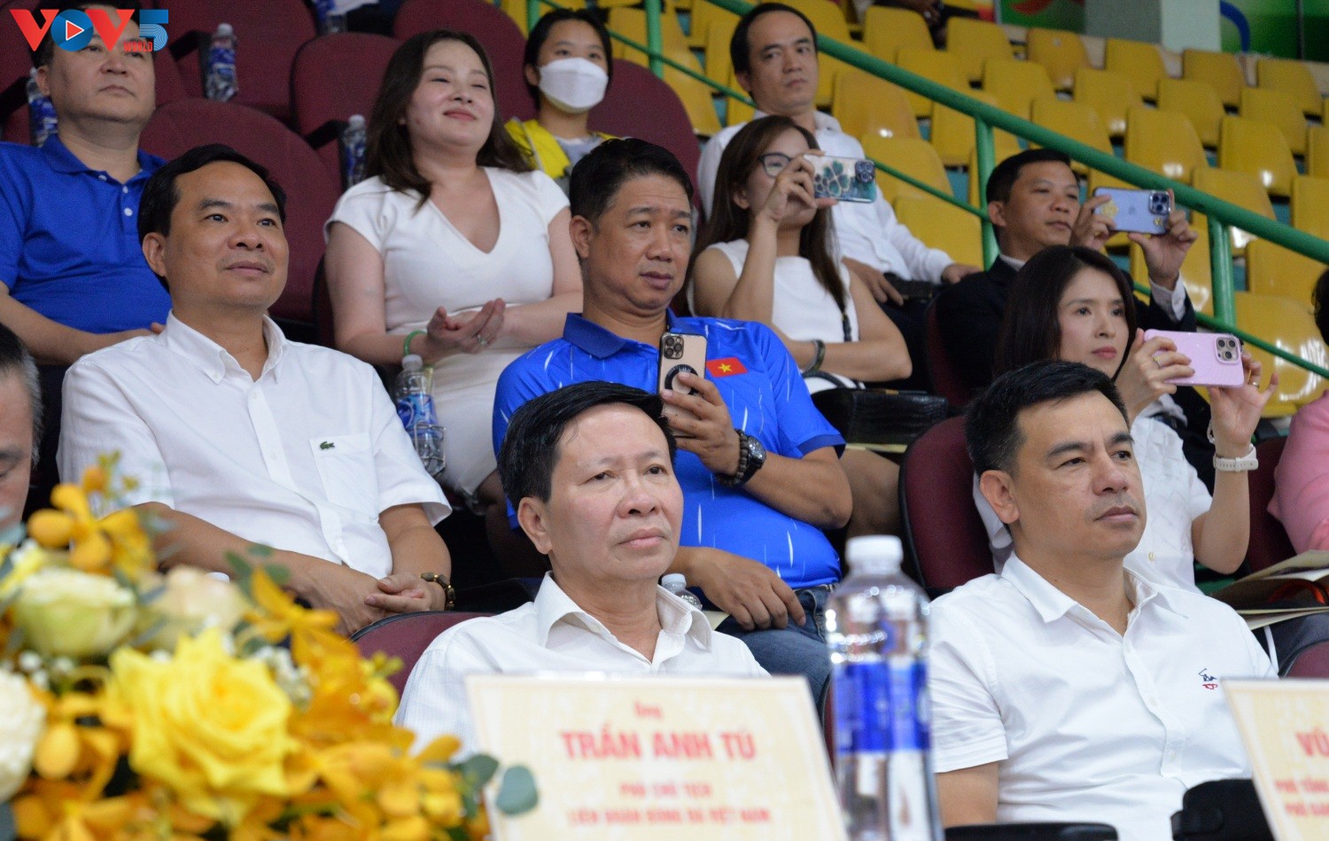 Dirigentes de la Voz de Vietnam (VOV) y la Federación de Fútbol de Vietnam (VFF) presentes en el acto de apertura del torneo. (Foto: VOV) |