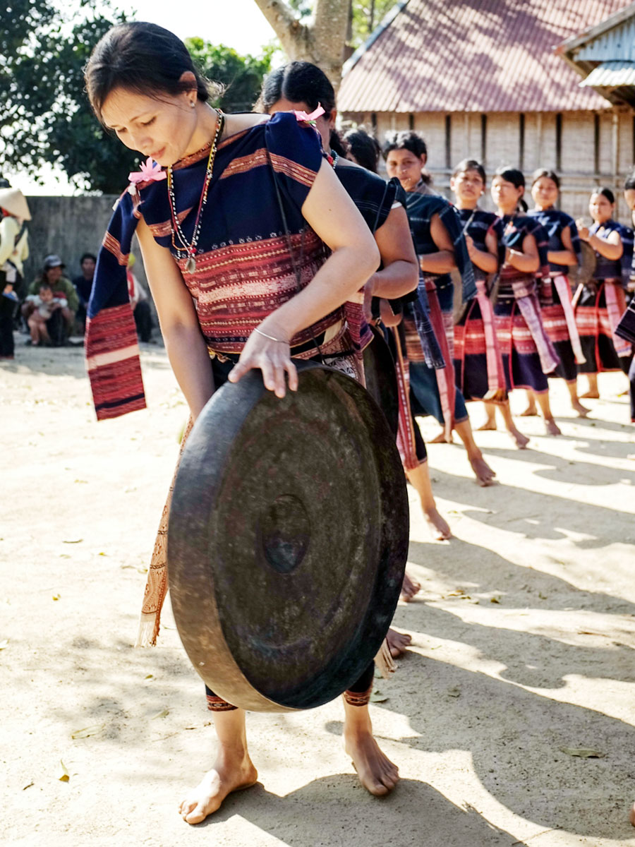 (VOVworld) – Cuando empieza el frío y las flores de melocotón y ochna esmaltan los bosques y montañas, los pobladores de Tay Nguyen (Meseta Occidental) entran en la época de fiestas prolongada desde finales del año viejo a principios del nuevo y reinan en las aldeas los vivaces acordes de gongs y batintines. En especial, en la comunidad de Ede Bih, una rama de los Ede en el villorrio Trap, cabecera de Buon Trap, distrito de Krong Ana, en la provincia de Dac Lac, todos los conciertos de batintines Jho son ejecutados por mujeres.