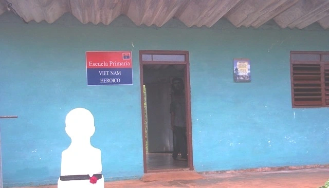 Minutos después, por encima de los remanentes de lo que fuera un valioso emporio forestal y cafetalero, llega un indicio visual de que andamos cerca de nuestro destino; la bandera cubana ondea con la brisa aún cálida de noviembre; ¡a la vista, “Vietnam Heroico”!: una escuelita primaria que reverencia su nombre con el hacer cotidiano de sus pioneros, maestros e instructores de arte.
