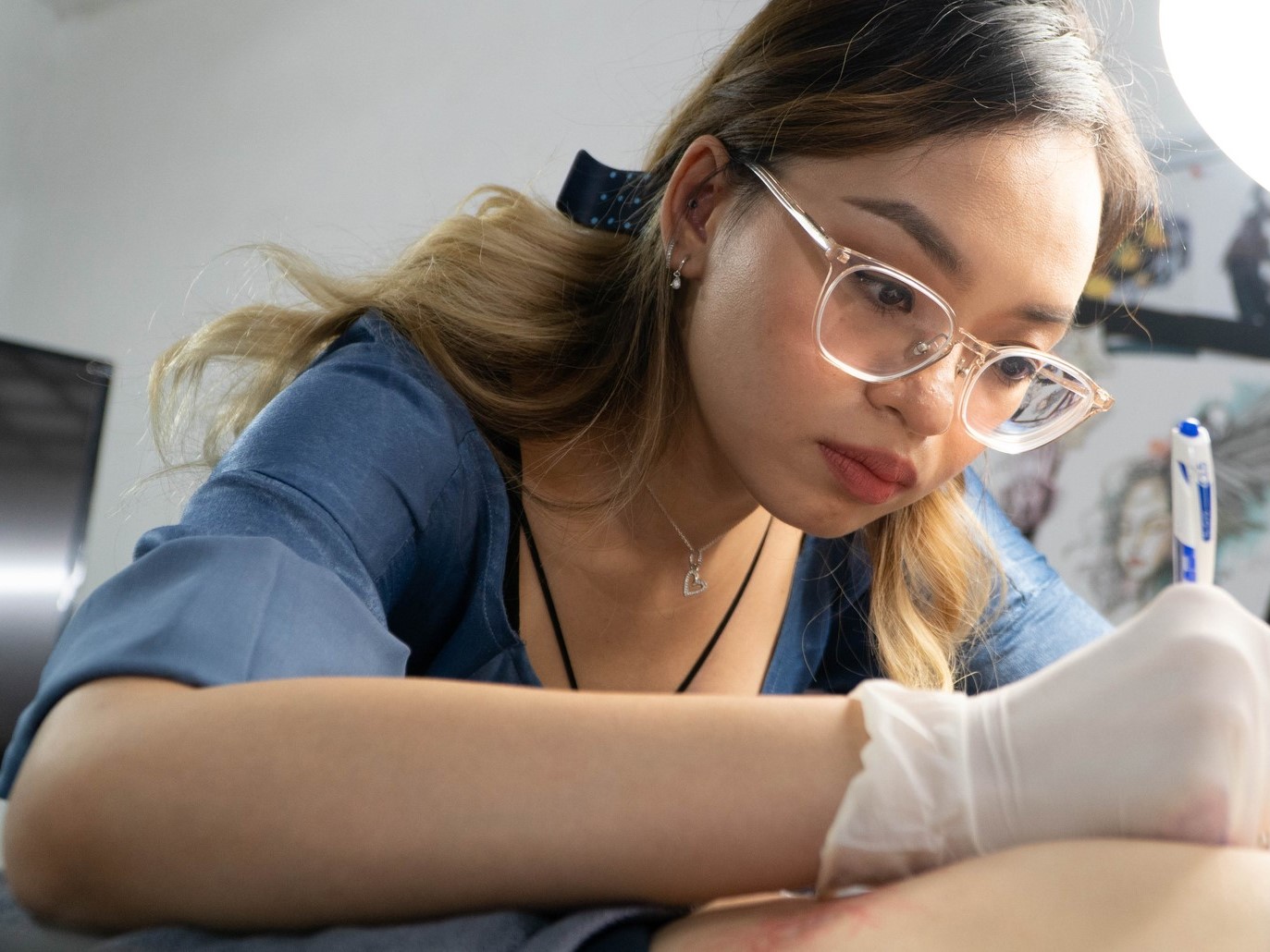 Bich Ngoc traza líneas básicas antes de tatuar una cicatriz. (Foto proporcionada por la personaje) |