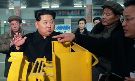 ![]() Kim Jong-un exhibe lo que parece una mini bomba nuclaer |