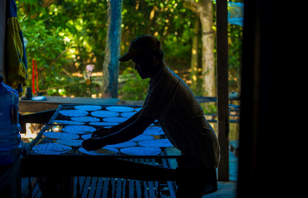 | La diferencia entre el “banh uot” y el “banh trang” es que este último se seca durante 3 horas después de ser sacado de la cocina. |
