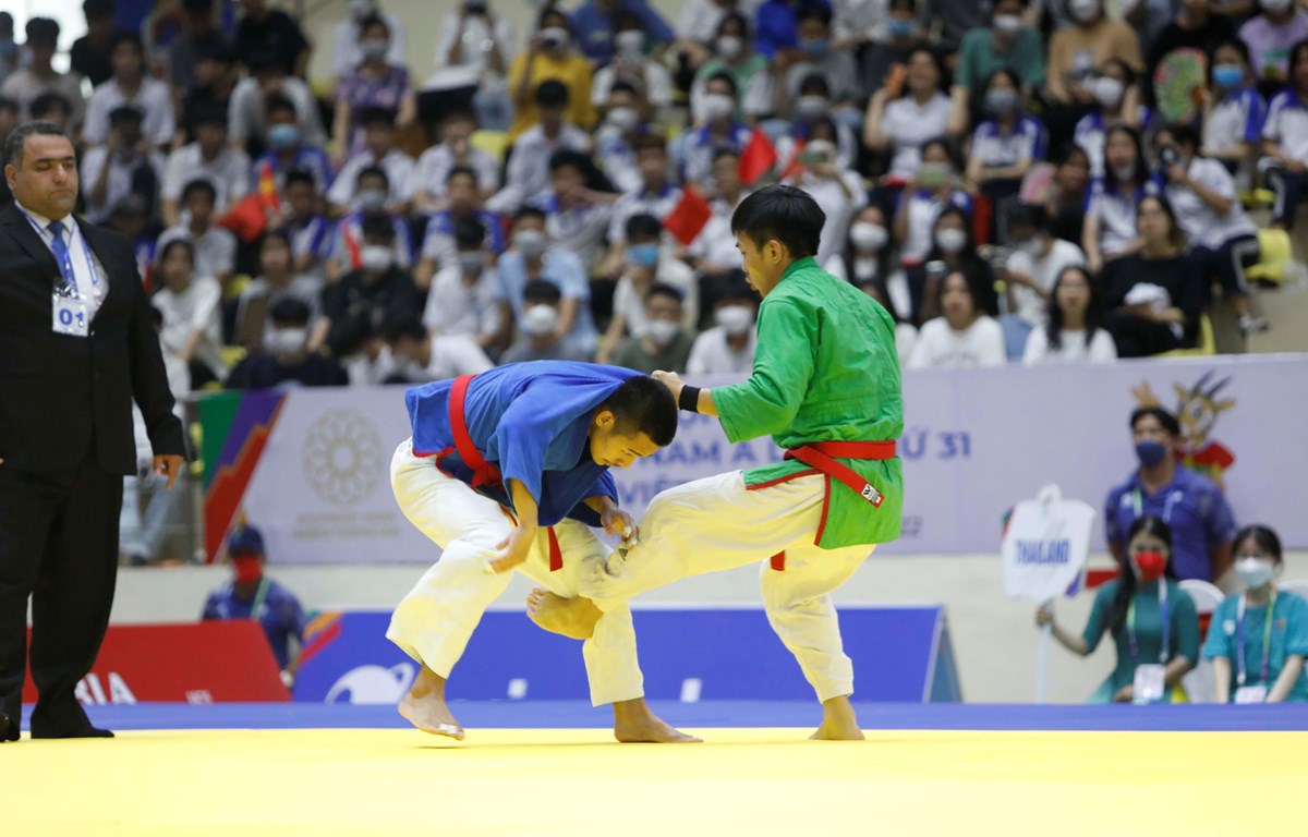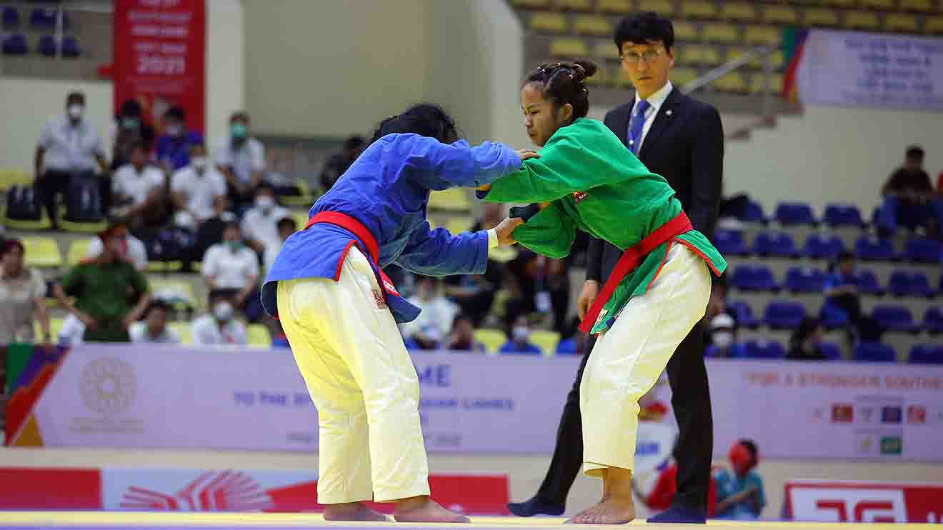 La atleta de Kurash To Thi Trang (d), logró la primera medalla de oro para la delegación de Vietnam en el trigésimos primeros Juegos Deportivos del Sudeste Asiático. |