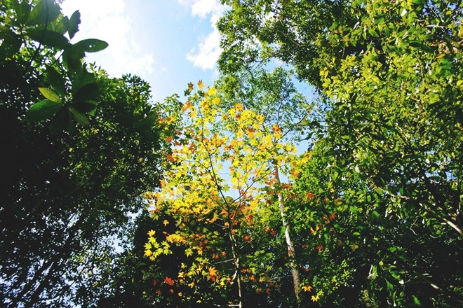 Después de que el bote atraque, los visitantes seguirán el sendero hacia el bosque. Las hojas de arce rojo se vuelven amarillas o rojas durante los meses de octubre y noviembre y permanecen así hasta mediados de diciembre. (Foto: vnexpress.net) |