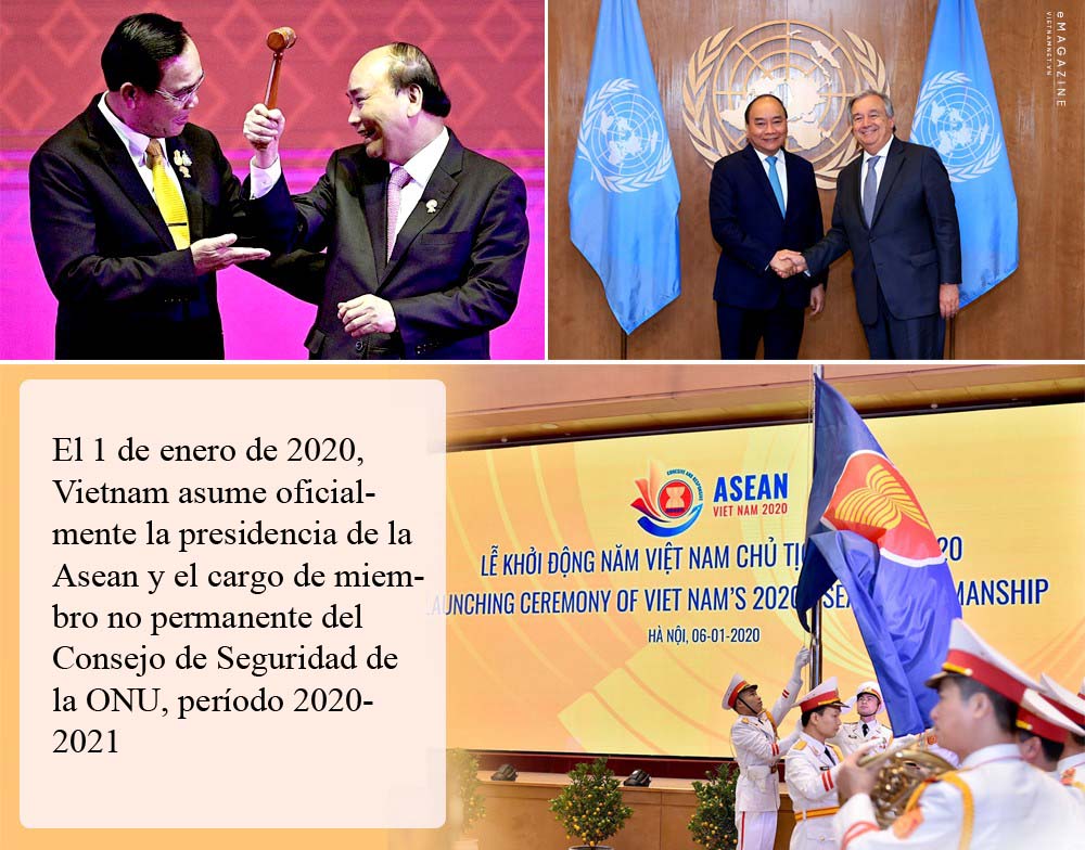2020 es un año muy especial que ha sido testigo de numerosos cambios complejos en la región y en el mundo: la pandemia del covid-19 con sus impactos de gran alcance, el aumento de la competencia estratégica entre las grandes potencias, la caída de la economía mundial en una profunda crisis, además de numerosas amenazas de seguridad tradicional y no tradicional. En este contexto, Vietnam ha asumido una “doble” responsabilidad este año como presidente de la Asociación de Naciones del Sudeste Asiático (Asean) en 2020 y como miembro no permanente del Consejo de Seguridad de la ONU en el período 2020-2021. Su desempeño refuerza su marca personal, creando así una base importante para consolidar mecanismos de cooperación en los próximos tiempos.
