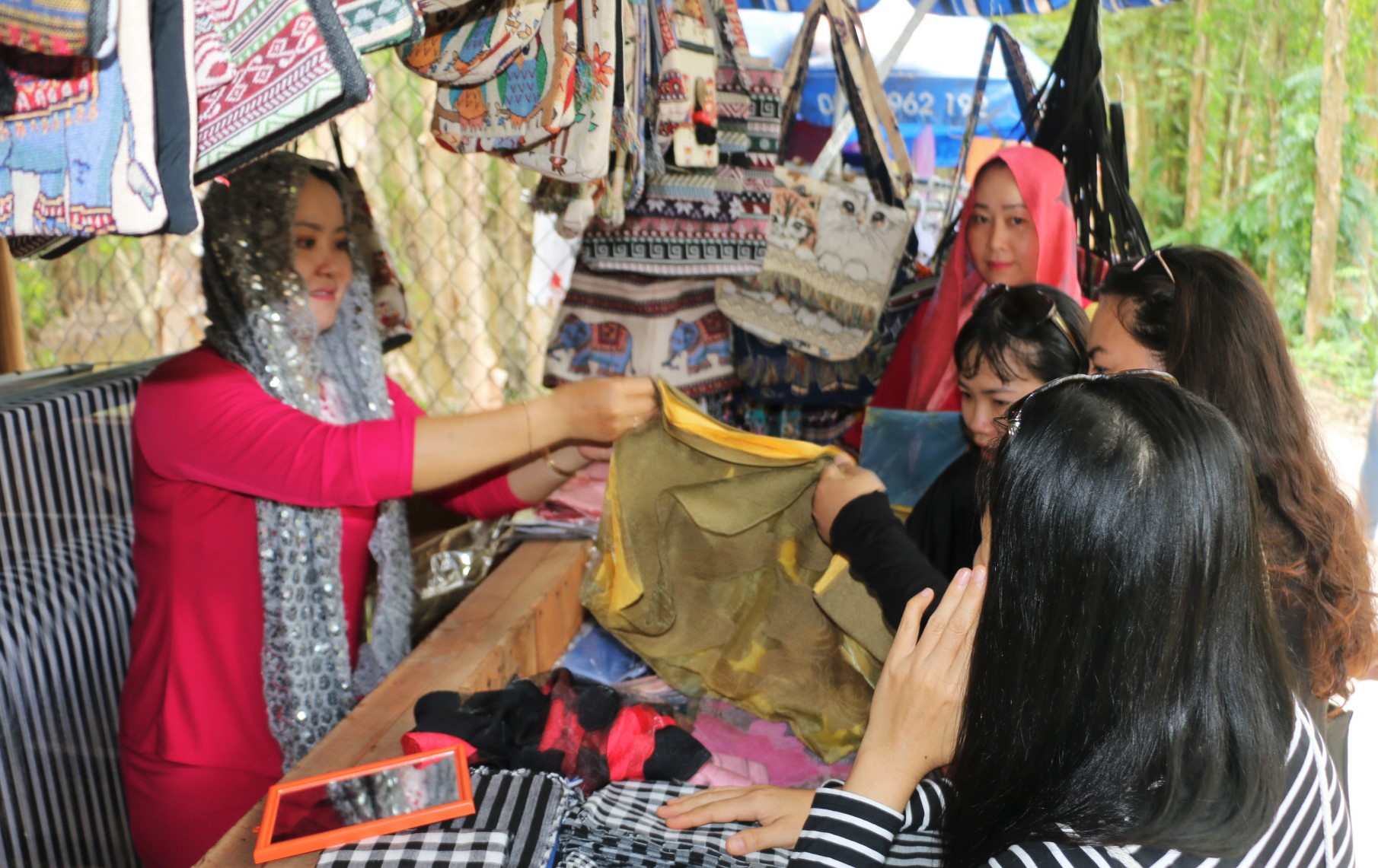 Turistas nacionales aprecian el tejido tradicional de los Cham. (Foto: VOV) |