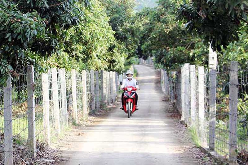 El espacioso camino de cemento que conduce a la aldea de Quyet Thang, en la comuna de Chieng Khuong, atraviesa las repletas huertas de mango y longan maduros. Como uno de los poblados líderes en el movimiento de construcción de nuevos caminos rurales en el distrito de Song Ma, en la actualidad la carretera principal hacia la aldea y las vías importantes alrededor de la misma se han cubierto de concreto, muy favorables para el desplazamiento de personas y mercancías.