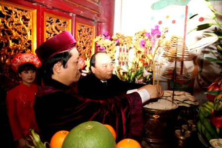 El vicepremier Nguyen Xuan Phuc (d.) ofrenda inciensos