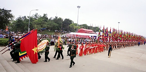 (VOVworld) - El centro de la conmemoración fue la fiesta del Templo Hung en la provincia de Phu Tho. En nombre de los compatriotas de todo el país y residentes vietnamitas en el extranjero, Phu Tho y otras 8 provincias que representan al Norte, Centro y Sur ofrendaron inciensos y rindieron homenaje a los Reyes Hung.