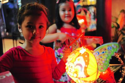 Niñas juegan farorillos decorativos en un ambiente cálido