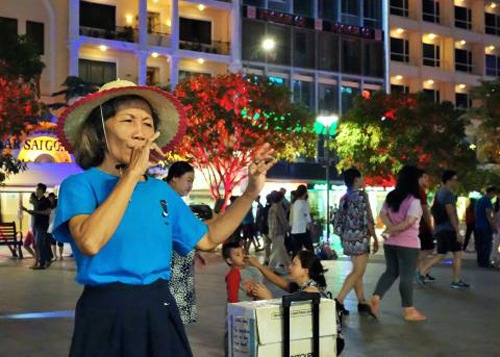(VOVworld) – Durante los últimos 6 meses, el público de Ciudad Ho Chi Minh, especialmente del vecindario de la calle peatonal Nguyen Hue, del distrito I, se ha familiarizado con la presencia de un grupo de personas sordomurdas en el barrio. Cada día sobre las 7 de la noche, llegan y colocan altavoces, y después, empiezan a interpretar la música con el lenguaje de señas.