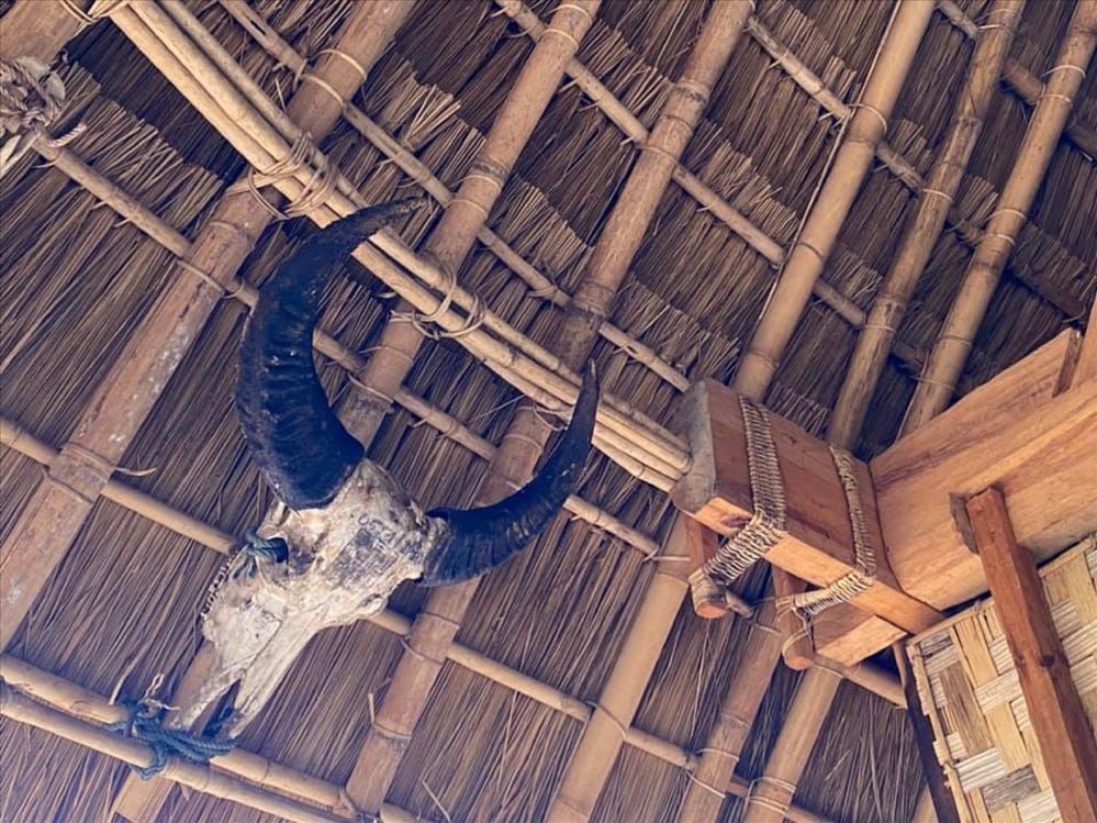 En la casa comunal de los Gie Trieng, la cabeza de búfalo es un objeto sagrado. (Foto: baodantoc.vn) |