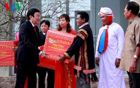 ![]() El presidente Truong Tan Sang entrega regalos a los aborígenes
