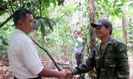 ![]() Điểu Hơl, encargado de los asuntos étnicos del Comité Popular de la provincia Binh Phuoc visita el modelo de cultivo especial "rau nhip" del señor Dieu Dan