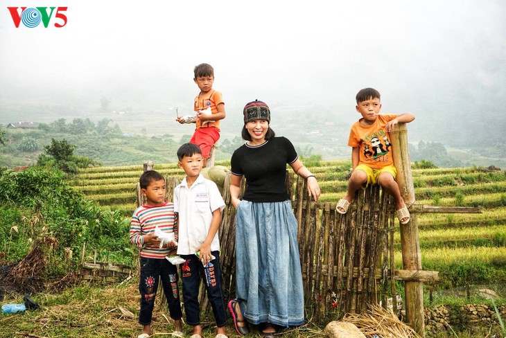 Una turista y niños de Mu Cang Chai. Foto: Doan Nguyen |