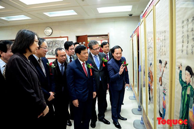 Los asistentes tienen oportunidad de apreciar colecciones de pinturas hechas de materiales populares vietnamitas, especialmente los gremios de Dong Ho y Hang Trong, y entender mejor la costumbre de comprar cuadros festivos para decorar las casas y orar por la buena suerte.