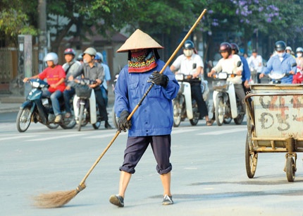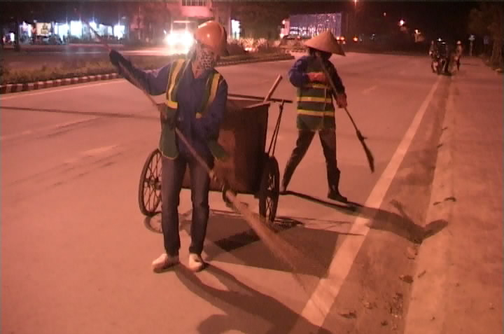 Como Loan, Nguyen Thi Hue se vincula con la limpieza desde muy joven. En sus 24 años de profesión, desafía incontables días bajo sofocantes veranos de 39 o 40 grados Centígrados, o noches lluviosas y frías, para cumplir con su trabajo, limpiando calles y devolviendo el ambiente salubre a los barrios. En la charla entre los dos turnos, Hue compartió que el apoyo de su familia le motiva a seguir con el trabajo. Pasó más de 10 años sin disfrutar en casa de la reunión en la nochevieja. “Siempre regreso a casa en cuanto termino el trabajo. Es una labor dura, pues se debe realizar en las calles, tanto por el día como por la noche, y muchas veces bajo desfavorables condiciones del tiempo. Además no dispongo de suficiente tiempo para cuidar de mi familia y cumplir con las faenas domésticas. Sin embargo en el trabajo recibo el apoyo de mis colegas, y en la familia, mi marido me alienta y me ayuda mucho, como por ejemplo a cocinar y llevar y recoger a mis hijos de la escuela.”