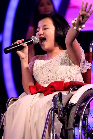 La chica con osteogenesis imperfecta ha superado sus dolencias y dificultades de la vida. Su sonrisa optimista y su voz clara cada vez que canta se han convertido en una semilla de optimismo que sirve de ejemplo a las personas con limitaciones físicas.