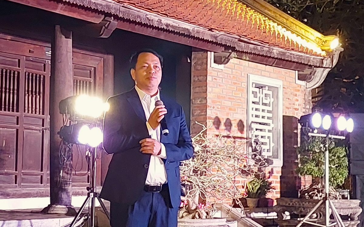 Le Xuan Kieu, director del Centro de Actividades Culturales y Científicas del Templo de la Literatura, habla en el programa de proyección de la película de mapeo 3D. (Foto: Huyền Trang/VOV1) |