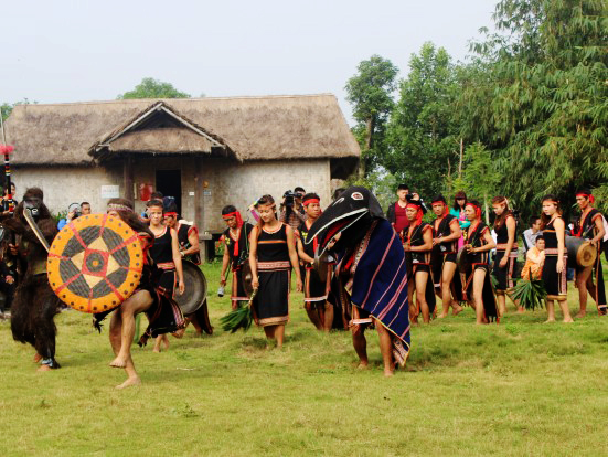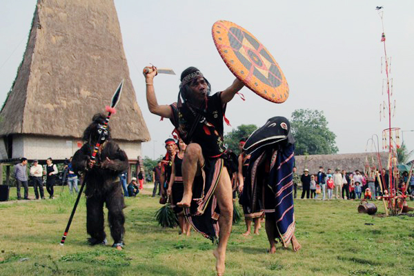 Antes de iniciar la festividad, el patriarca llama a los lugareños a realizar la limpieza de caminos, Casa Comunal y abrevadero. También preparan 4 efigies humanas de materiales naturales o productos agrícolas. Dependiendo de la condición económica, los aldeanos brindan al Yang (Deidad) ofrendas adecuadas. Generalmente estos son un buey, cerdo, cabra y pollo. Sin embargo, en los últimos años, los Bana eligieron al chivo como ofrenda. Según su concepción, el cabrío es el mayor y más sagrado de todos los animales domésticos del poblado. La fiesta se realiza con la asistencia de los lugareños en la Casa Comunal, bajo la dirección del patriarca. El jefe del villorrio encabeza la multitud, tomando un escudo y cuchillo seguido por un joven que lleva una careta y sable, otros 4 que portan efigies y 2 muchachas con dos plantas Thysanolaena latifolia en sus manos. Por último, vienen el grupo de intérpretes de gongs y batintines y los aldeanos. El momento más esperado es cuando el patriarca pide a las Deidades proteger a los lugareños y espantar a los aparecidos entre gritos y percusiones frenéticos de gongs y batintines. Tras finalizar los rituales, los participantes presentan vestidos tradicionales, toman vino con la caña de pesca, ingieren comidas típicas e interpretan cantos folklóricos. El señor Ma Le de la minoría étnica Bana que vive en Hanoi, compartió: “Vivo lejos de mi tierra natal desde pequeño, por eso, me gustan mucho estos bailes y ritmos de gongs y batintines acordes a los rituales antiguos. Me siento muy satisfecho por esta celebración.”