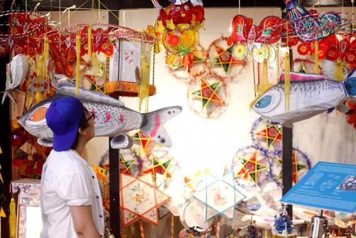 Los clientes pueden contemplar todos los pasos de la elaboración de pasteles de luna en las tiendas aldeanas. (Foto: Quynh Mai/VOV5) |