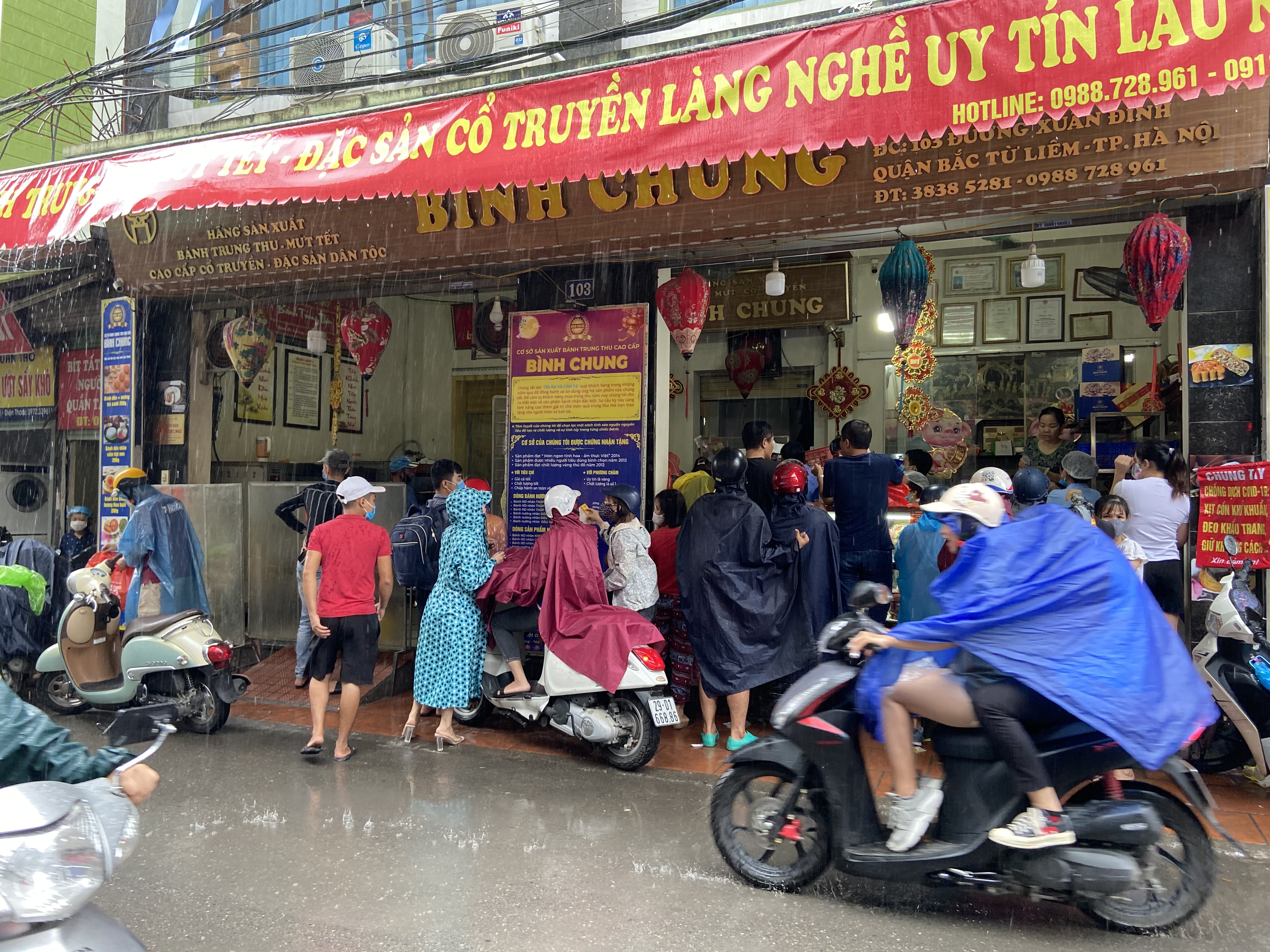 A pesar de la lluvia, mucha gente acude a la pastelería de Binh Chung para comprar pasteles de luna. (Foto: Quynh Mai/VOV5) |