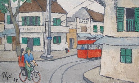 Tal vez el mejor artista que consiguió resaltar el espíritu de Hanoi de los años 50, 60 y 70 del siglo pasado es el gran difunto pintor, Bui Xuan Phai. En su época, escribió: “Hanoi desprende muchas bellezas escondidas, y cada una de ellas de por sí se graba en el corazón de todo el mundo. Por ejemplo, el casco antiguo y sus casas bien conservadas salen preciosos en la pintura. El ritmo del barrio no es tan monótono como el de los bloques de viviendas o edificios modernos, sino muy vital, con casas pequeñas o grandes, o unos tejados salientes por aquí o cóncavos por allá”. Gracias a su sensible percepción sobre los diferentes tonos del paso del tiempo por el que transcurren esas calles y su magnífica imaginación, el pintor Bui Xuan Phai logró crear sorprendentes hermosuras, reflejadas entre la imagen de algunos artistas de “cheo”, (teatro popular) la naturaleza muerta, y sobre todo el barrio antiguo de Hanoi. Para el público, está predeterminado que él es el pintor de las 36 calles antiguas. En las épocas duras del país en general, Bui Xuan Phai pintaba en cualquier material que encontraba, desde papel de periódico o cajas de cigarrillos, y el legado que dejó son los cuadros sobre las calles y aquellos instantes que las hacen únicas y eternas. El pintor Bui Thanh Phuong, hijo de Bui Xuan Phai, dice: “Estas pinturas hablan exclusivamente de las calles en su época, representadas en la vestimenta de la gente que caminaba, característica que permite a especialistas afirmar en qué año fueron elaboradas. Por ejemplo: la postura de unos señores vestidos de “ao dai” (túnica tradicional), que llevaban un paraguas nos lleva a los años 60. Hay pinturas sobre calles que solo la generación nuestra conoce por ciertos rasgos, como cuando mi padre describía los huecos negros en las aceras, que eran túneles en los que se escondían de las bombas del enemigo.