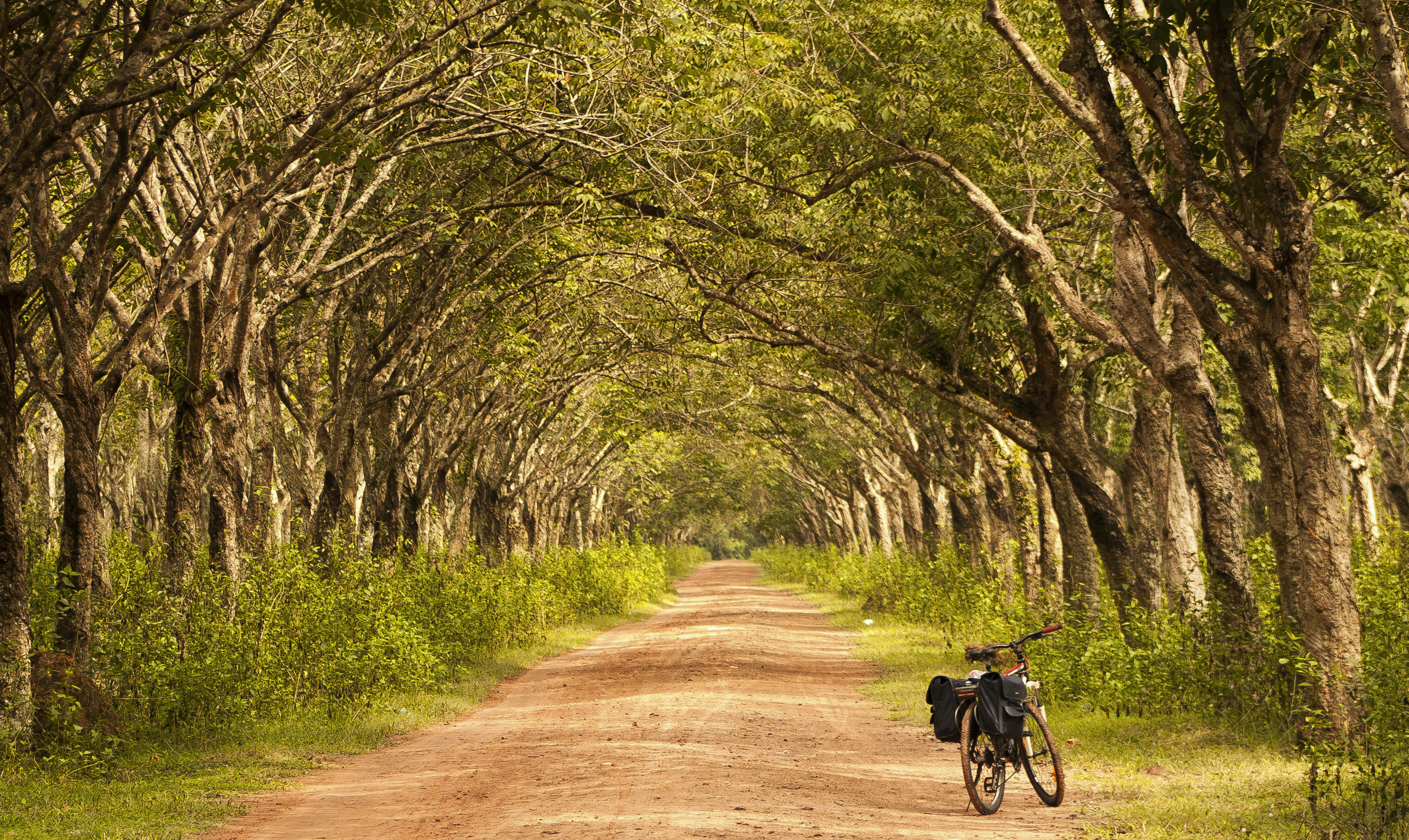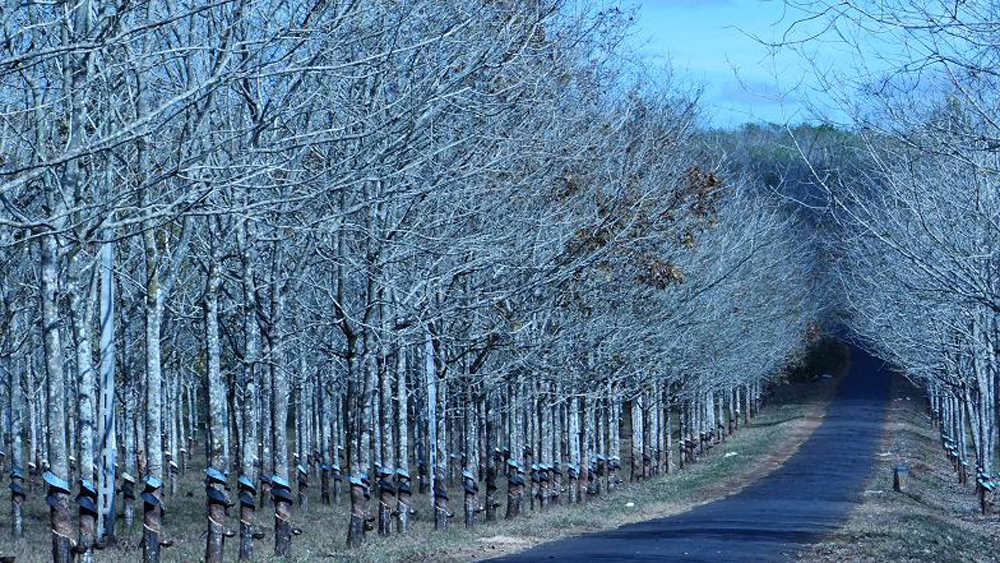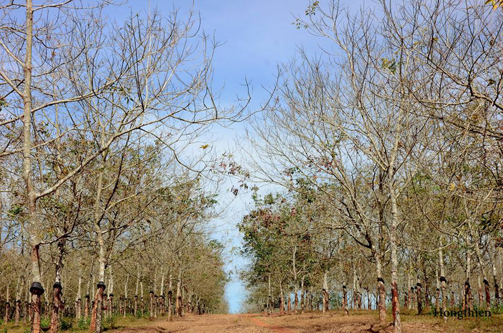 Cruzando a través de una plantación o un bosque de caucho en esta temporada, los excursionistas hallarán un escenario misterioso semejante a un cuadro pintado en un horizonte azul.
