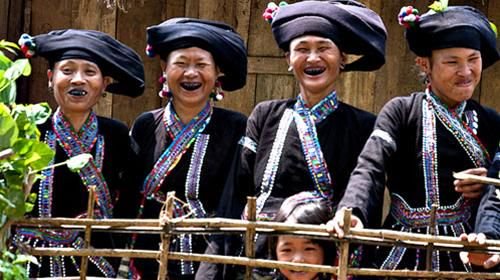 Los patrones creados por las hábiles manos de las mujeres crean una belleza única en los trajes del pueblo Lu. |