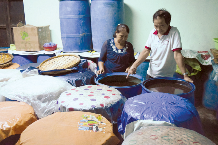 Una familia productora de la salsa de pescado en Nam O presenta las etapas de elaboración de este manjar (Foto: VGP) |