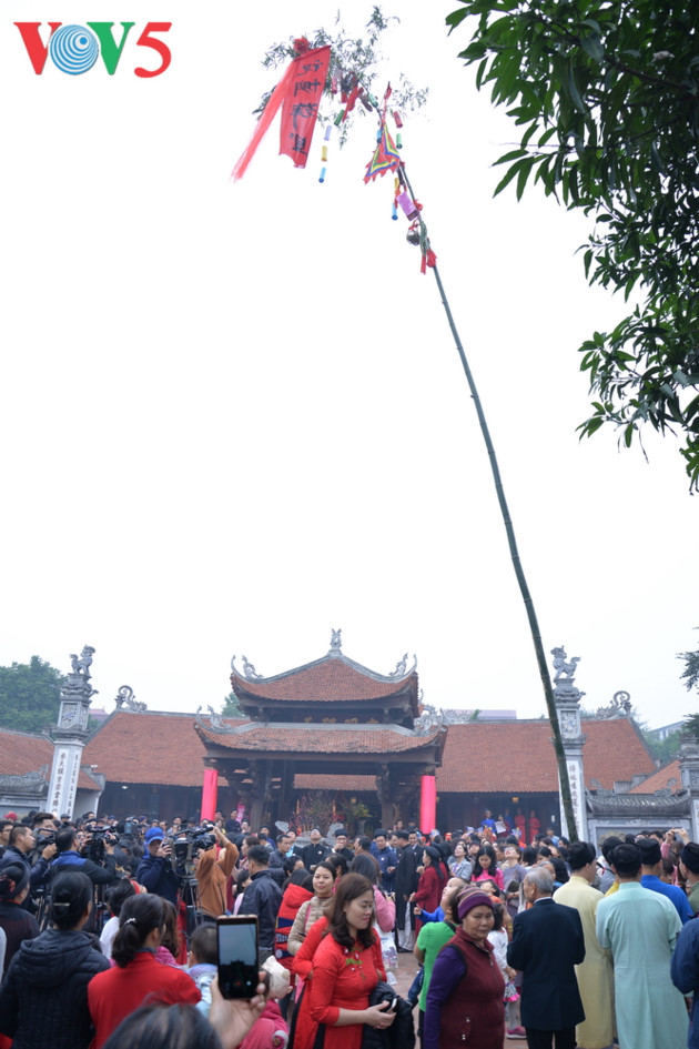 Como uno de los rituales importantes del día de Año Nuevo, la ceremonia de levantamiento del Cay Neu atrae la atención de mucha gente. |