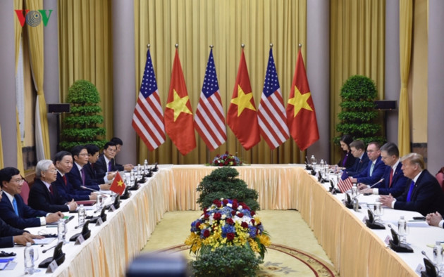 Trump agradece los exhaustivos preparativos de Vietnam y afirma que su país concede mucha importancia al desarrollo de la asociación integral con Vietnam y aprecia su papel en la región del Indo-Pacífico. |