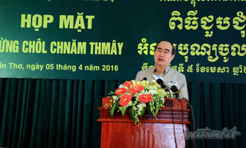(VOVworld) - En ocasión de la Fiesta de Chol Chnam Thmay, o el Año Nuevo de los jemeres nacionales, el Comité Directivo para los Asuntos del Suroeste celebró una reunión entre los veteranos revolucionarios, venerables y monjes jemeres de las provincias y ciudades en el Delta de Mekong. Al intervenir en la cita, el presidente del Frente de la Patria de Vietnam, Nguyen Thien Nhan, alabó los esfuerzos y el espíritu de solidaridad para superar las dificultades de las localidades, especialmente de millones de habitantes jemeres por el desarrollo del país y del Suroeste.