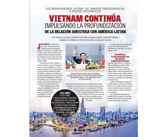 Según la agenda, Vuong Dinh Hue sostendrá encuentros con altos dirigentes anfitriones, asistirá al Foro Empresarial bilateral y al programa artístico para conmemorar el 50 aniversario de las relaciones diplomáticas, que se establecieron el 25 de octubre de 1973; además de conversar con el personal de la Embajada de Vietnam y representantes de la comunidad connacional en Argentina.