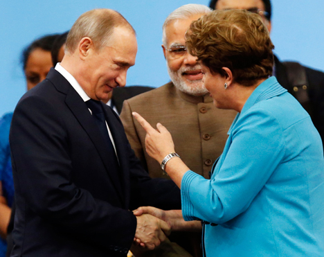 ![]() El presidente ruso, Vladimir Putin, intercambia con su homóloga brasileña, Dilma Rousseff