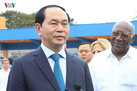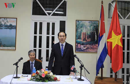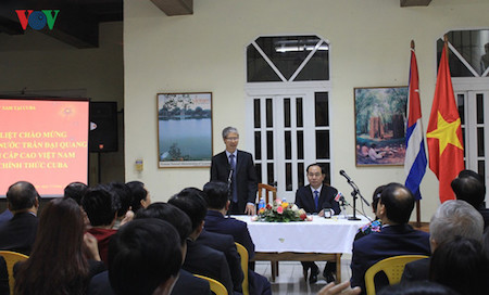 ![]() En la tarde del 15 de noviembre, el presidente Tran Dai Quang y su comitiva visitaron la embajada nacional donde dialogó con su personal y representantes de la comunidad de coterráneos en la isla