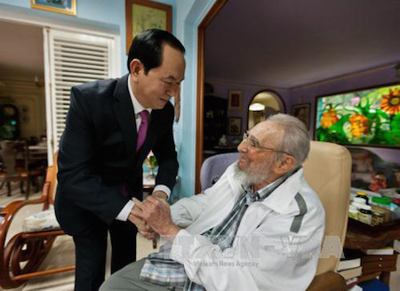 ![]() Nada más pisar la tierra habanera, el estadista vietnamita sostuvo un encuentro con el líder histórico de la Revolución cubana, Fidel Castro |